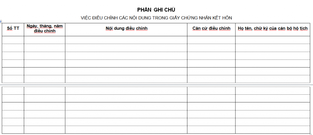 Họ và tên chồng……………………………………………… Ngày, tháng, năm sinh:…………………………………… Dân tộc:………………..Quốc tịch:………………………… Nơi thường trú/tạm trú: ……………………………………………………….. Số CMND/Hộ chiếu:…………………………. | Họ và tên vợ……………………………………….. Ngày, tháng, năm sinh:……………………….. Dân tộc:……………..Quốc tịch:……………….. Nơi thường trú/tạm trú: …………………………………………………………. Số CMND/Hộ chiếu:……………………….. |