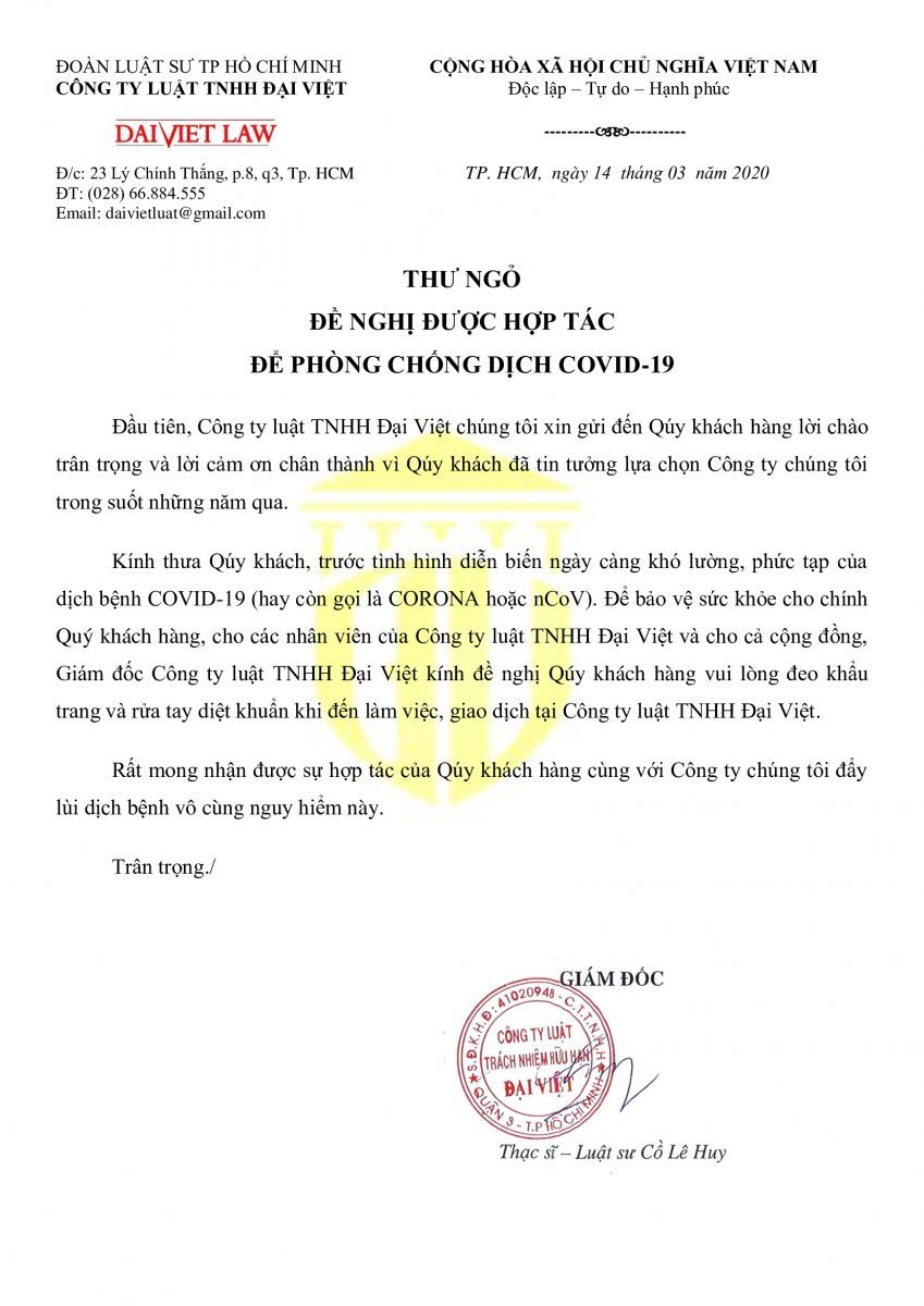 THƯ NGỎ ĐỀ NGHỊ ĐƯỢC HỢP TÁC ĐỂ PHÒNG CHỐNG DỊCH COVID-19